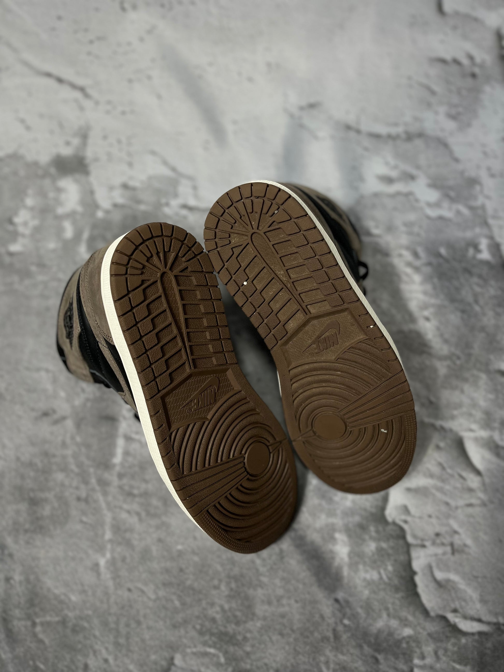 Având o talpă intermediară cu model velă și o talpă exterioară din cauciuc maro închis , această versiune rămâne fidelă moștenirii AJ1, aducând în același timp un caracter proaspăt oricărei game de pantofi sport.